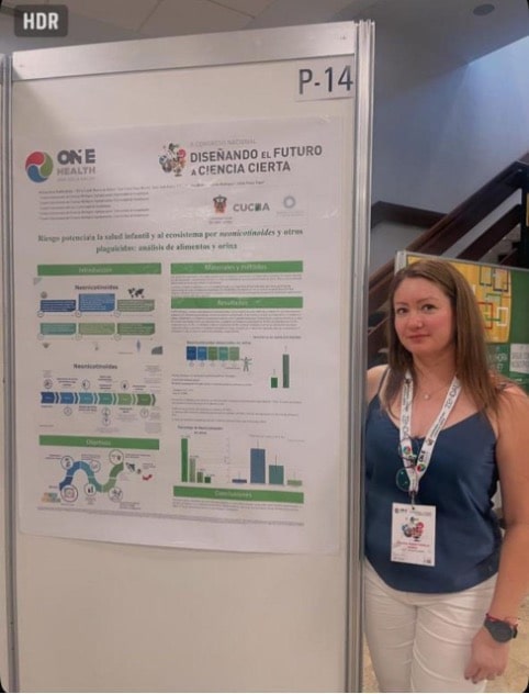 Con diversos recesos para las presentaciones orales cortas de los participantes de divulgación científica donde se expuso su proyecto de investigación titulado “Riesgo potencia a la salud infantil y al ecosistema por neonicotinoides y otros plaguicidas: análisis de alimentos y orina”.